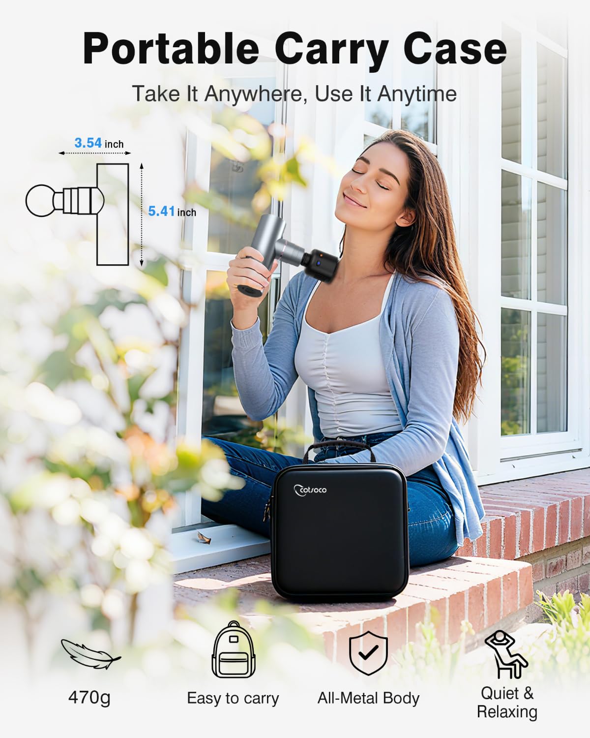- Compact Full-Metal Body, Lightweight & Portable: Built with a durable full-metal housing, this mini massage gun delivers premium texture and long-lasting performance. Weighing only 470g (1.03 lbs) and measuring 5.4 × 3.6 × 1.8 inches, it’s easy to carry anywhere. Perfect for gym, office, or travel recovery.