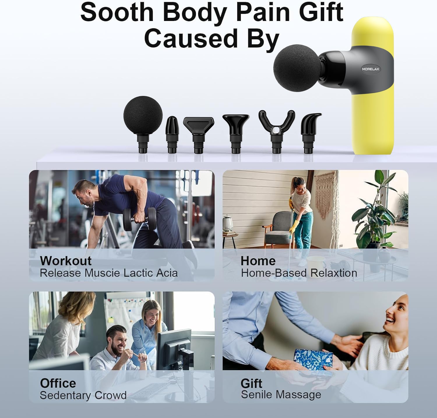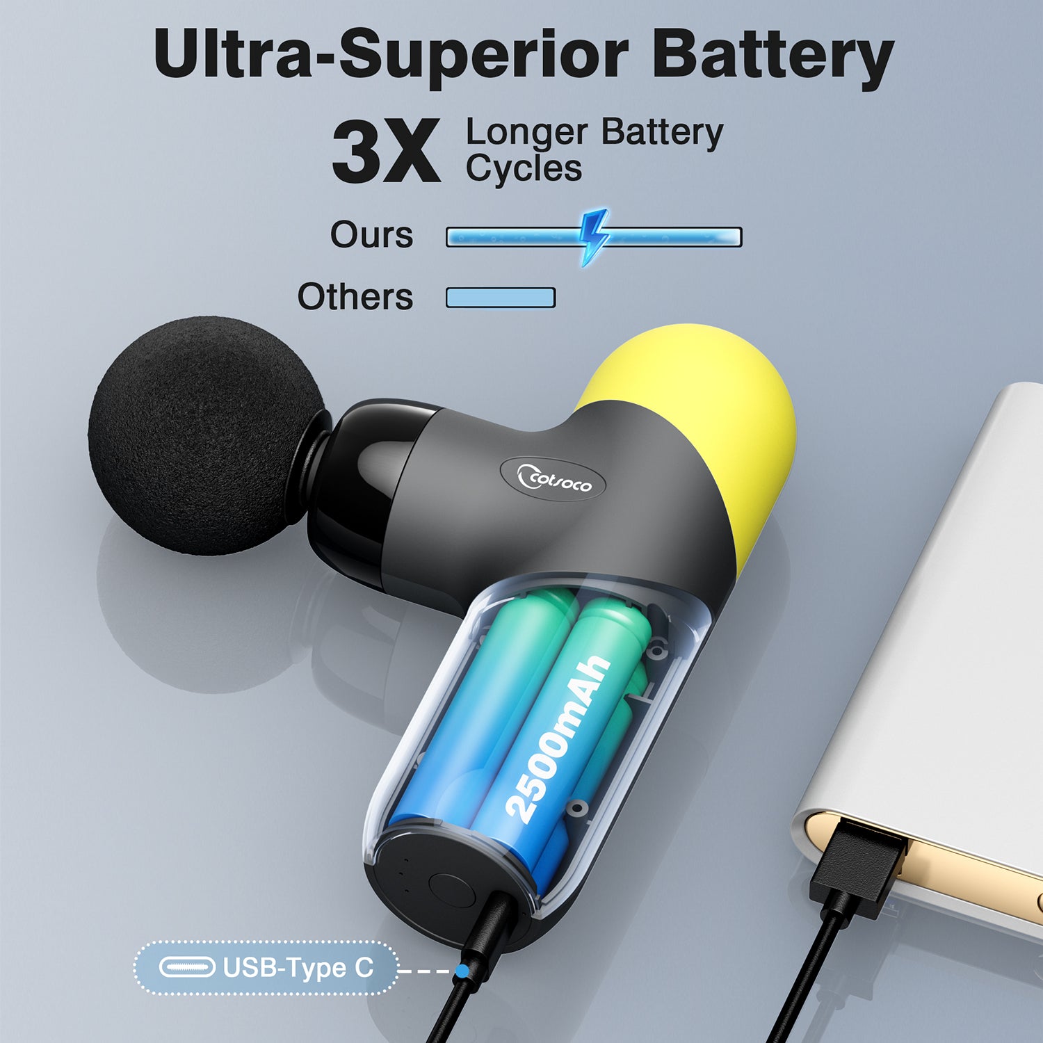 - Ultra Portable & Silent Percussion Massager for Athletes: this mini muscle massage gun deep tissue is ultra-compact and easy to grip.The muscle massage gun is equipped with a rechargeable high-quality battery, and it can power a weeks' worth of workouts after fully charging; 10-minute auto-off feature for safety consideration.